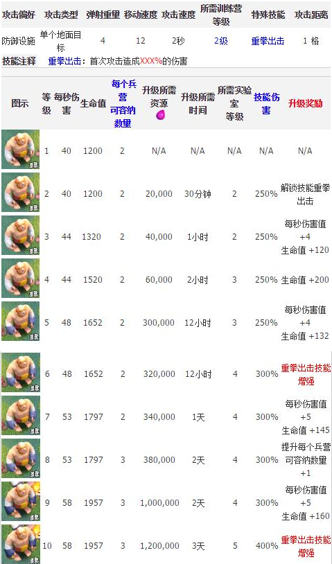 首页 → 安卓游戏资讯 → 安卓游戏攻略 → 部落冲突巨人拳击手升级所需资源时间数据详情汇总