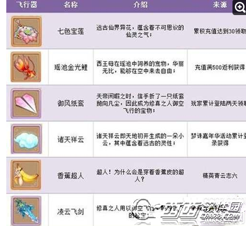 飞行器作为装备装饰的一种类型,是不具备任何附加属性的,唯一的功能就是让玩家离开地面在空中飞行。梦幻诛仙手游飞行器不仅让行走更加方便,减少了游戏中地面的拥挤,还可以凌空而下俯瞰游戏中美如画的风景,可谓一举两得。下面是我为大家罗列的比较常见的几种飞行器: