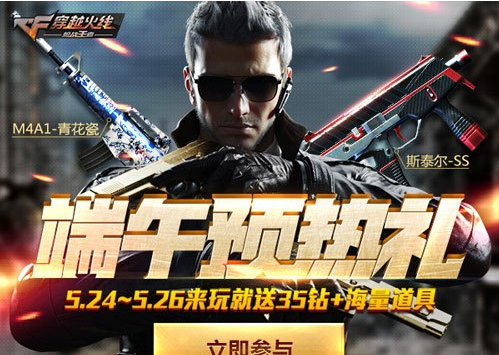 5月24日至26日,玩家登录且每天累计游戏时长超过15分钟,即可对应获得钻石、M4A1-青花瓷、斯泰尔-SS、黄金沙鹰、刀锋,累积登录天数越多奖励越丰厚,让小伙伴们提前感受节日的欢快氛围。