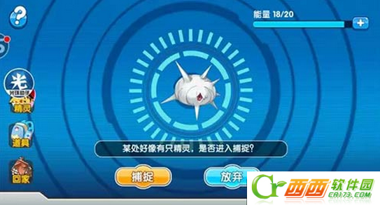 如果打算对某个摇出的精灵进行捕捉,按左边黄色的“捕捉”按钮,画面自动进入捕捉界面。(图5)