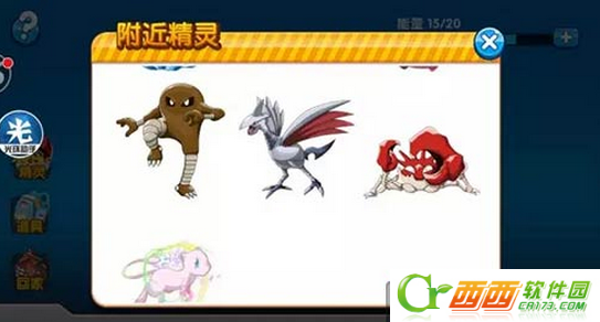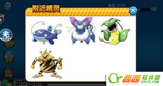 上图中,有一个精灵图标,打开后,会出现你所在区域的一个范围内可能会出现的精灵的分布,排列顺序从上到下稀有度逐渐上升。(图2)
