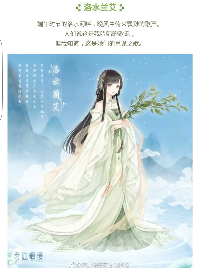 累计获得指定数额的艾叶香囊就可领取端午套装【洛水兰艾】及金币、钻石奖励。