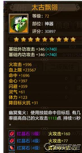 目前天龙八部手游中唯一的一把五阶72级逍遥神器,太古飘翎属性展示。