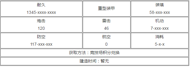 南胖在游戏中不能靠建造获得,打演习每天获得的勋章可以进行兑换,单看南胖的属性就叫人眼前一亮1300+的耐久应该是目前最高的战列舰了。