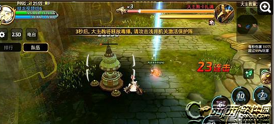 “毒爆”技能在我看来应该可以算得上是大主教卡扎满的大招,因为本技能为全屏攻击类型,即使你躲在本地图的边缘角落还是会无一幸免的被本技能伤到。我们唯一的躲避方式就是通过攻击地图上固定的浅井机关来激活保护阵,不过浅井机关的血量也是比较厚的,建议所有队员此时不要过分贪对Boss的输出,优先攻击浅井机关,毕竟生存下去才是王道。