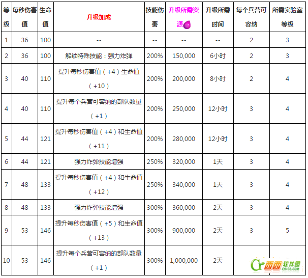 首页 → 安卓游戏资讯 → 安卓游戏攻略 → 部落冲突炸弹兵怎么玩 炸弹兵升级数据一览