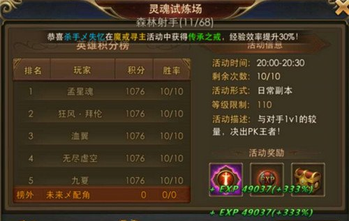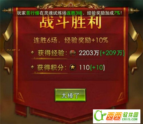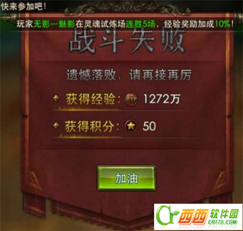 3、战斗胜利和战斗失败都有奖励,但是胜利获得的经验和积分要比失败的高,而且连胜场数越多,奖励越丰厚。