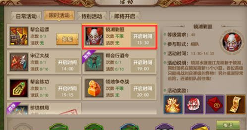 整体而言,镜湖剿匪活动奖励丰厚,玩法也比较简单,掉落的奖励道具也非常丰厚,是每天限时活动中一定要参加的活动,诸位玩家前往别错过。