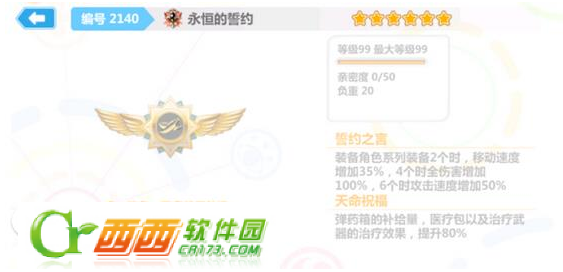 装备角色系列装备2个时,一定速度增加35%,4个时全伤害增加100%,6个时攻击速度增加50%