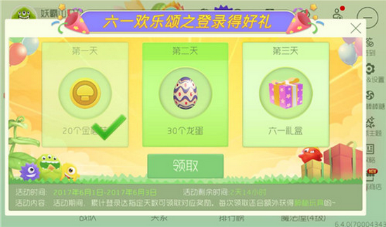 第三天:可获得六一礼盒,神秘玩具奖励;