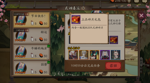 六一儿童节新增式神委派任务,并没有什么特殊的要求,玩家使用等级高和品级高的式神搭配就行了