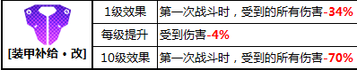 真田幸村下的效果,和武器补给·改一样,这个buff的触发是在进入到一个有怪物的地图后才会触发,只会维持30秒,超过即失效,进入一个新图后重新触发。一个不稳定的防御buff。不推荐带。