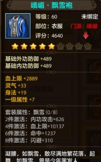 门派套装:这个不用多说,游戏前期最好的装备了,尽量选择4星5星的门派套装,就是最好的装备。