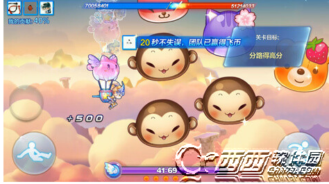 天空之城的玩法相对简单,只需不停的点击屏幕控制角色升降。本关处于对战最后阶段,主要作用是在对战双方分数相差不大的情况下,拉开分差。天空之城有3条飞行路线,所以随机匹配队友时,要注意避开队友所选择的路线。