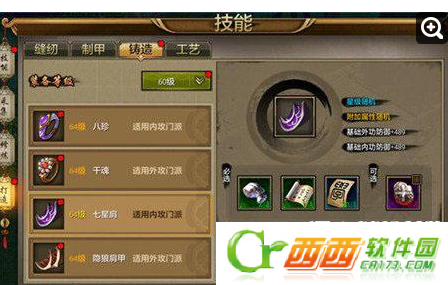 采集可以在苏州和洛阳学习,总共四个采集技能,对应可以打造的八个装备位。在学习到了采集技能之后,可以到指定地点采集基础生产材料,进行合成,就可以获得打造装备所需要的材料了。第二部是打造符,同样共有四种对应八个装备位置。打造符的获取途径主要是游戏中的副本四绝庄。此外还可以在银两商城中和商会中购买。最后需要的材料就是打造图了,可以在四绝庄副本,缥缈峰副本中获得,同样可以在商会中购买。这三种材料是打造装备的必须材料,此外还有强化打造材料。同样是四种对应八个装备位。可以在商城中元宝和绑元购买,游戏中的一些活动也会获得。强化打造材料在一定程度会上会加强打造装备的星数,提升获得高星装备的概率。目前游戏中的手工装备可以打造50多级到90多级的装备。打造装备的等级越高,需要的基础材料和强化材料也就越高。相对应的生活采集技能也就需要更高的等级来采集高级材料。目前游戏中想要提升采集技能等级就只能通过帮会商店兑换的书籍来升级。需要消耗帮贡兑换。高等级的书籍还需要帮会商店的等级提升才开放。