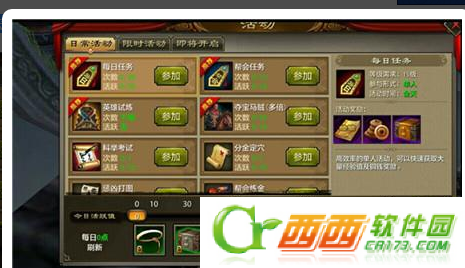 各位玩家可以点击界面右上角的活动按钮,打开活动日程界面进行领取每日任务。