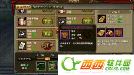 每日任务的奖励包含大量的经验值和铜钱,这些都是各位少侠每日的必需品,完成一轮任务后还可以获得每日任务的宝箱,里面的宝物价值不菲哦~