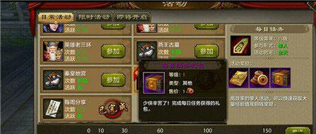 每日任务的奖励包含大量的经验值和铜钱,这些都是各位少侠每日的必需品,完成一轮任务后还可以获得每日任务的宝箱,里面的宝物价值不菲哦~