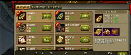 各位玩家可以点击界面右上角的活动按钮,打开活动日程界面进行领取每日任务。