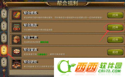 然后在帮会界面中的福利界面中,打开帮会商店。