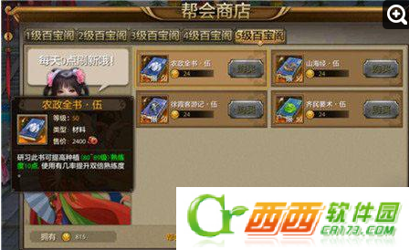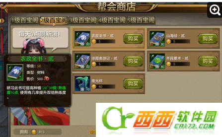 2级帮会商店,可以购买采集技能熟练度提升20-39级的书籍,任务道具夜光杯。