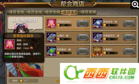 4级帮会商店,可以购买至尊强化精华,采集技能熟练度提升60-79级的书籍,任务道具千佛莲灯。