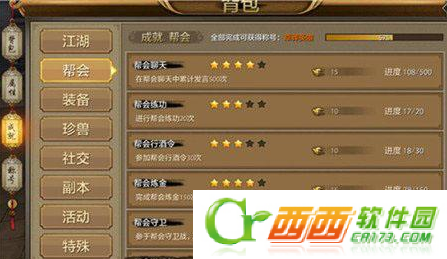 帮会抢红包,帮会发红包,帮会聊天,帮会练功,帮会行酒令,帮会炼金,帮会守卫,七个系列。全部完成可以获得称号,草莽英雄。
