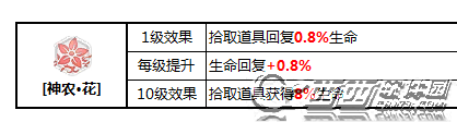 神农·花的触发条件是拾取道具,也就是说,在矩阵里,无论你吃的是buff,还是技能卡,还是游骑兵徽章,都能触发它的回复效果,可以说是相当变态,按照矩阵里道具的掉落率,再配上buff叠加的效果,有了神农·花,你矩阵基本上就能告别sl的日子了。