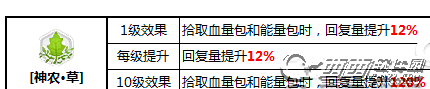 在矩阵这种目前没有上限的关卡中,神农家的三大buff效果可谓是无限放大,其重要意义堪比生命补给,是目前热度仅次于生命补给的几个补给之一我们先来看看效果,草的效果是增加你在拾取能量包和血包时的回复量,所以说,你吃一个能量包就等于吃了两个。不过在矩阵这种能量包远远多与血包,而且高层矩阵血包掉落很少的环境下,草的效果其实不是特别满意,所以,在相同条件下,花和穗的效果会比草更加适合矩阵。