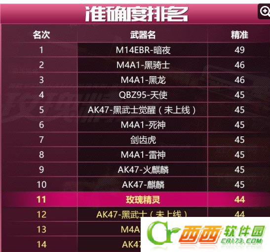 以上是参与本次大数据对比的所有已知英雄级步枪。具体对比情况如下: