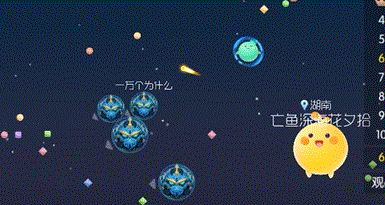 【星星】:地图上随机出现的彩色点,玩家移动过程中通过海量吞噬星星以增加体重,是前期发育的主要能量来源。