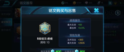 蓝色兽痕:暴击率+0.5%/最大生命+60