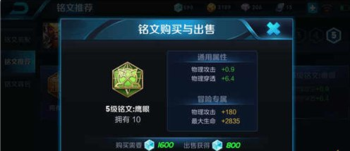 绿色鹰眼:物理攻击+0.9/物理穿透+6.4