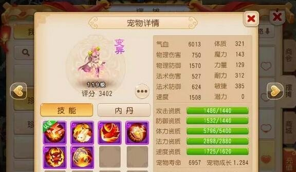 蓝色纹饰的属性中物理攻击和法术攻击相信大家肯定不会选,至于速度和气血两个属性灵儿认为都不错。因为我们可以通过调整宠物的属性点来平衡属性,在保证宝宝能够配速的前提下,把多余的属性点加到体质上就行。