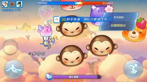 天空之城的玩法相对简单,只需不停的点击屏幕控制角色升降。本关处于对战最后阶段,主要作用是在对战双方分数相差不大的情况下,拉开分差。天空之城有3条飞行路线,所以随机匹配队友时,要注意避开队友所选择的路线。