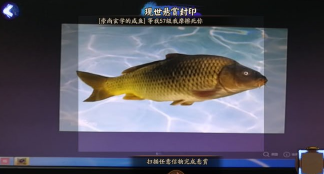 3、扫描任意信物完成悬赏,找了只鲤鱼的图片,在左下角有扫描识别,点击一下即可。