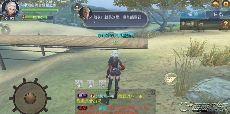 寻路:进入登陆点,找到一个木桥,观察地面金色闪光点,出现望远镜,调查发现。