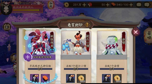 1、每天刷新时,有低概率刷出妖怪线索悬赏榜单,需要各位阴阳师大人前往现世,根据提示,扫描物品或图片,寻找妖怪藏身的线索哦;