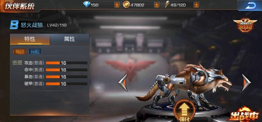 1、指挥官角色达到40级,解锁伙伴系统,各位指挥官就可以获得第一只伙伴——怒火战狼了。