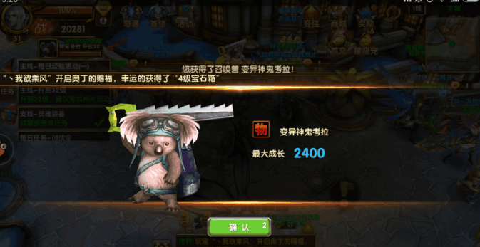 我用了4个普通的神鬼考拉兑换了一个变异神鬼考拉,使用之后,如下图: