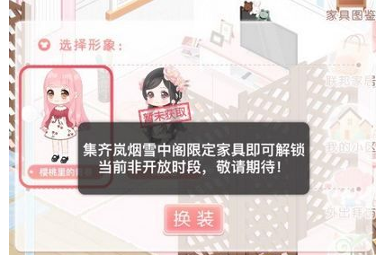 小屋系统中的角色换装樱桃里的青春开放,不过玩家需要收集齐【岚烟雪中阁】限定家具才能解锁。
