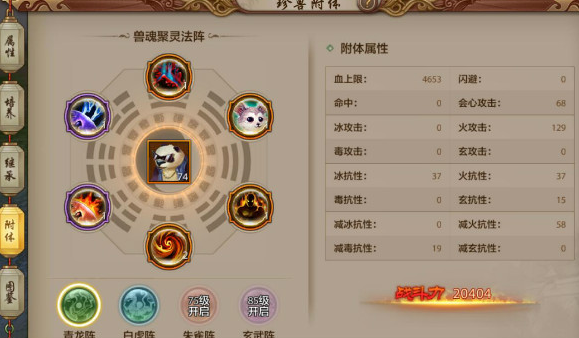也是非常重要的,天山的很多技能效果都非常需要会心属性,命中属性也是一样。最后两个内丹,推荐可以选择急闪和沸血,增加闪避和血上限,这两个属性都是非常实用的。以上是攻击型附体珍兽和内丹的选择。然后还有防御型附体珍兽和内丹的选择。