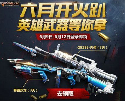 6月9日到6月12日期间,小伙伴们只要登录游戏就可以领取内含“寒霜烈龙(3天)+QBZ95-天使(3天)”的大礼包