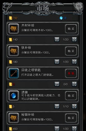 购买囚徒之塔钥匙需要花费2000金币,因此努力攒钱是获得囚徒之塔钥匙的前提,并且要注意的是,市场里面的物品是随机刷新的,因此有的时候并不会出现囚徒之塔钥匙商品,因此玩家只要攒够足够的金币,在市场多查看几次即可获得;