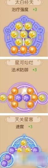 勇武组玩家的选择就多一些,太白经天加天关星客或者太白经天加星河灿烂都可以,这两种方式都可以获得所有的四时属性。由于治疗强度和速度对辅助来说特别重要,所以灵儿推荐大家选择太白经天加天关星客的组合方式。