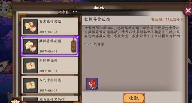 玩家在反馈之后得到了200勾玉的补偿,反馈方式:灯笼→联系客服那里,填写一下资料就好了。