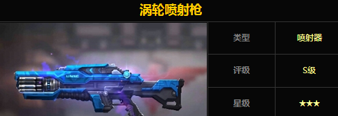 涡轮喷射枪是S级的喷射器,拥有着2542的火力,被评定为3星级哟!