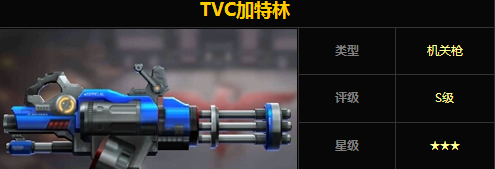 TVC加特林是S级的机关枪,拥有着2440的火力,被评定为3星级哟!