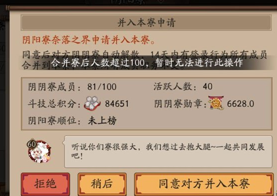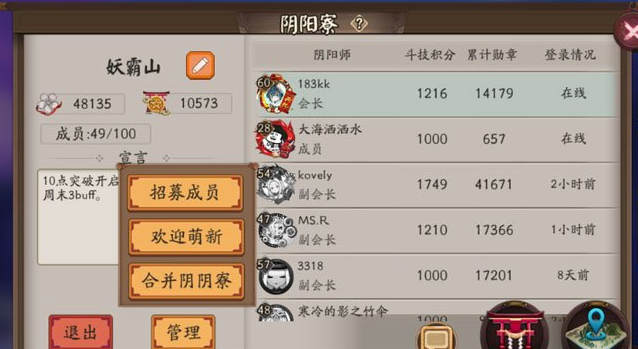 1、只有会长可以操作,点击管理→合并阴阳寮