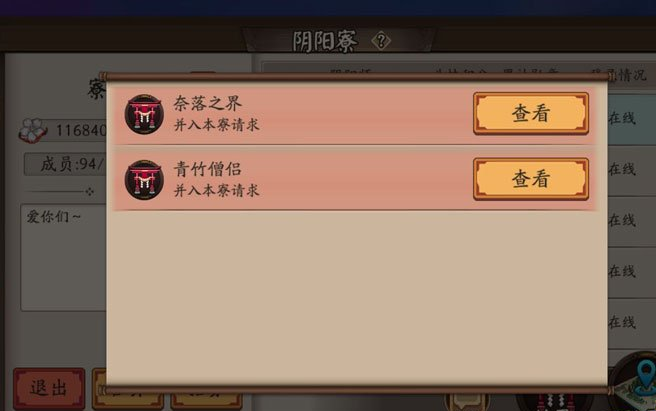 3、大寮原来的职位和成员都不会有什么影响,合并过来的寮全部变成成员,阴阳寮左边的那个对话框,会显示所有合并进来的人员,就像加入新成员一样。